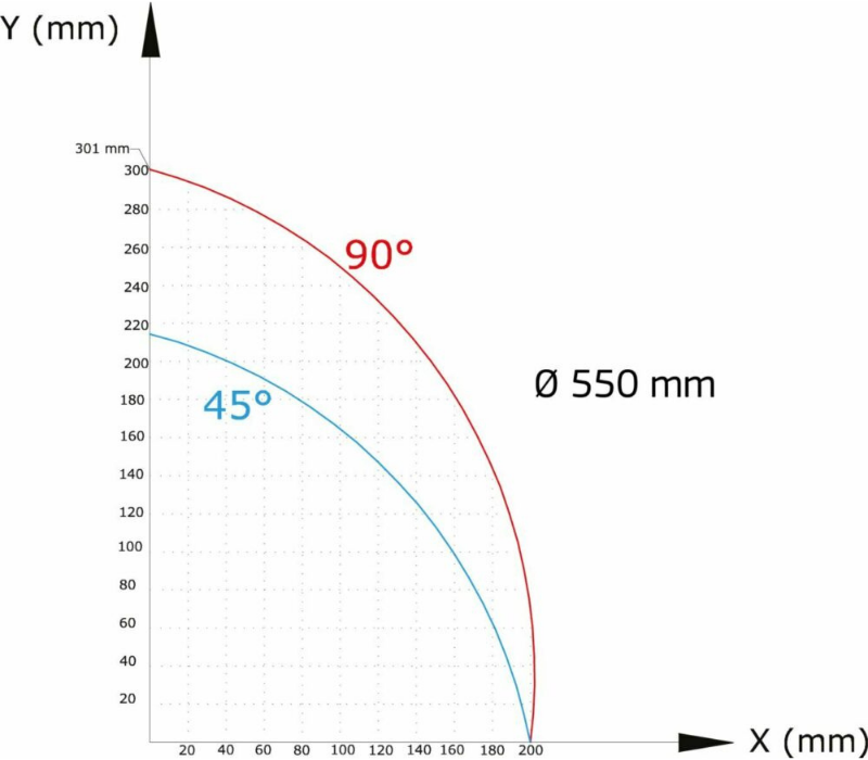 Le modèle TM-133 est équipé de lames de scie d’un diamètre de 550 mm. Les lames sont lubrifiées pneumatiquement. Les têtes de scie s’inclinent pneumatiquement à 90° et 45° intérieur. Les angles intermédiaires peuvent être réglés mécaniquement. La vitesse d’avance des lames et la quantité de lubrification sont réglables directement sur les têtes de scie.