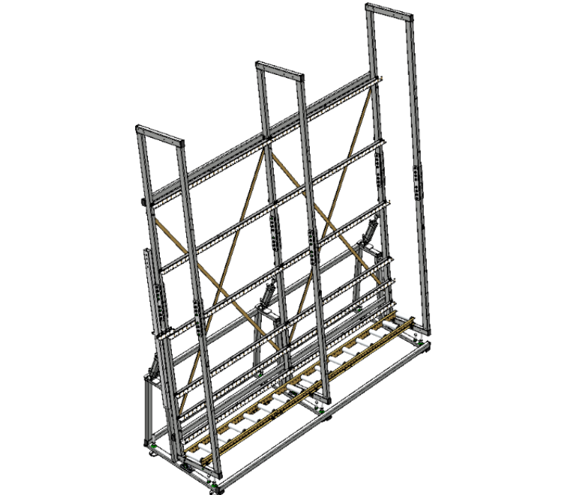 Convoyeur inclinable pour déplacer les éléments de la position 9° à 0°, afin qu’ils soient verticaux pour la transmission vers ou la reprise depuis un convoyeur mobile ou une station de montage verticale.