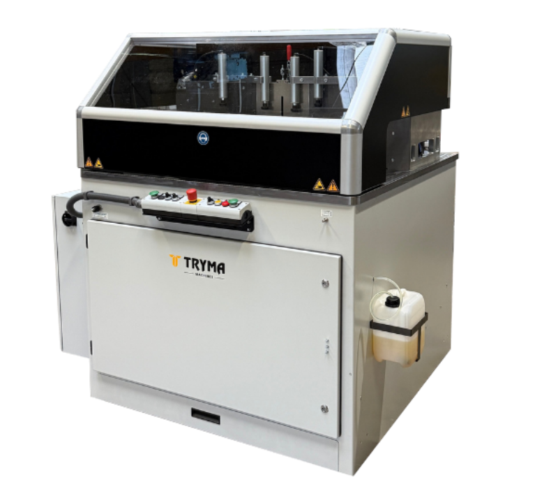 De werktafel is handmatig draaibaar met vaste aanslagen op 22,5°/45°/90°/-45°/-22,5° en de mogelijkheid tot het vastzetten van de werktafel op tussenliggende graden. Er is een digitale uitlezing van de hoekinstelling. De veiligheidskap wordt automatisch bediend en garandeert een maximale veiligheid voor de bediener. De profielen worden geklemd met 2 verticale en 2 horizontale instelbare pneumatische klemmen.