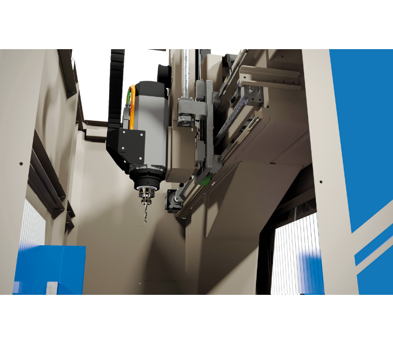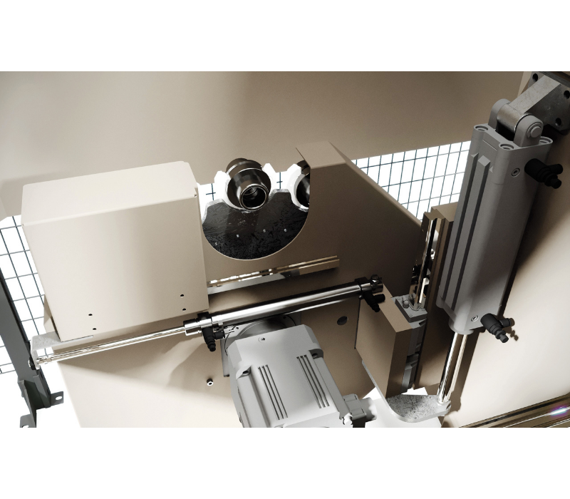 De elektrische spindel met vermogen 8,5 kW in S1 (10 kW als optie) met HSK-F63 cone opname is geschikt voor het bewerken van industriële profielen. De roteerbare spindel laat toe om profielen te bewerken onder alle hoeken tussen 0° en 180°.